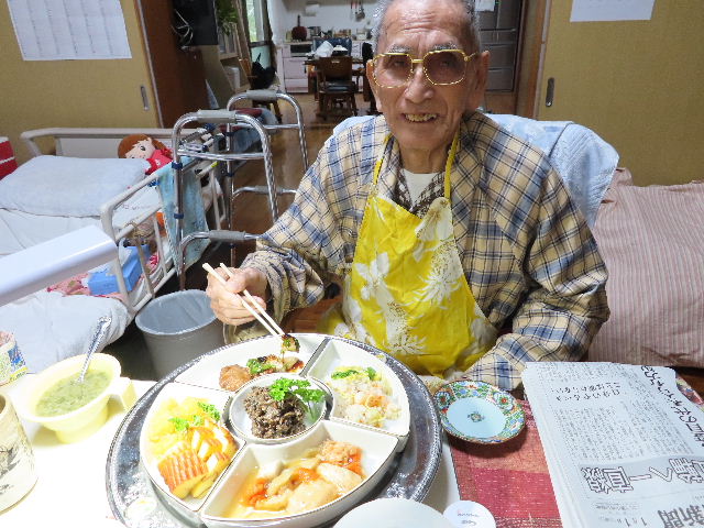 主人の為のおせちです。 豚の角煮・煮物・お寿司は完食しました。 野菜たっぷりのお味噌汁フードフレッサーで粉砕しています。 元日から食べっぷりがいいのよ、自力でトイレシャワー出来るが嬉しいです。
