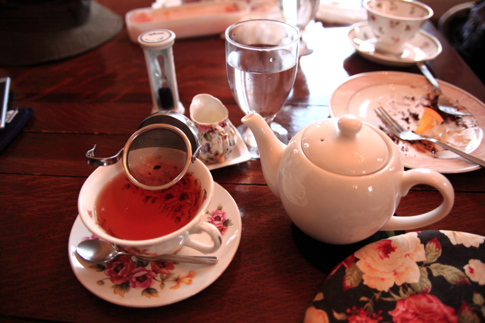 像:函館の外人居留地近くの鄙びた喫茶店から(紅茶は旧イギリス領事館で、茶コシ器が変わっていました) |